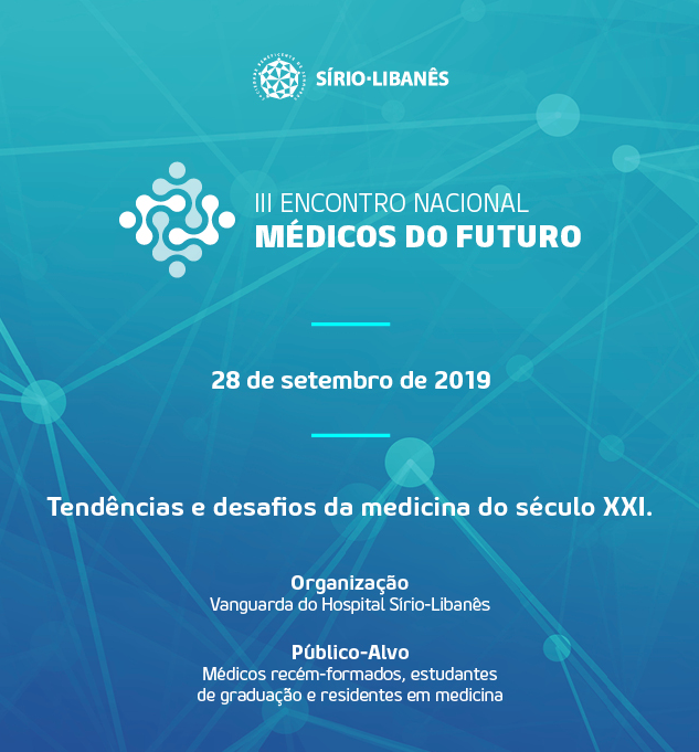 O Hospital Sírio-Libanês promove o 3º Encontro Nacional Médicos do Futuro, evento inovador voltado para estudantes de graduação e jovens médicos de todo o Brasil. No encontro serão discutidas e apresentados sob uma ótica de vanguarda temas relevantes e atuais como telemedicina, inteligência artificial, startups no mercado de saúde e experiência do paciente, dentre outros.