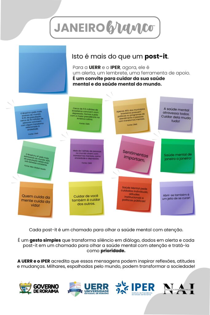 O Núcleo de acessibilidade e Inclusão – NAI em parceria com o IPER realizará um evento em alusão à Janeiro Branco no dia 31/01/2026, na praça Mirandinha, às 08h30. A iniciativa tem como público-alvo pessoas neurodivergentes, adolescentes, jovens, adultos e idosos e a comunidade em geral.