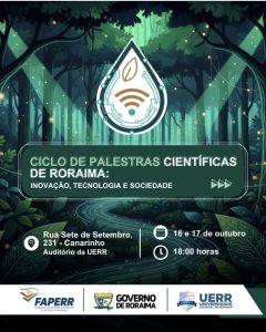A Universidade Estadual de Roraima (UERR), realiza nos dias 16 e 17 de outubro o Ciclo de Palestras Científicas de Roraima: Inovação, Tecnologia e Sociedade. O evento, que acontece no auditório do Campus Célia Maria Magalhães Nobre, reunirá especialistas locais, nacionais e internacionais para debater temas relevantes no campo da Ciência, Tecnologia e Inovação.