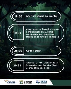 Com apoio da Fundação de Amparo à Pesquisa do Estado de Roraima (FAPERR), a programação trará debates relevantes no campo da Ciência, Tecnologia e Inovação, como Inteligência Artificial Generativa, Computação Gráfica, Computação Distribuída e Segurança da Informação, fomentando a cultura científica, o intercâmbio de saberes e a inovação tecnológica no estado.