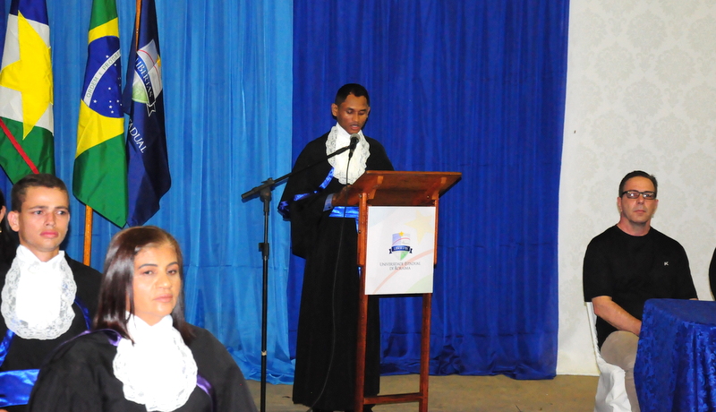 O agora engenheiro florestal, Antonio de Oliveira Filho, fez o discurso em nome dos demais graduandos. Francisco Lennon Reis da Silva, também do curso de Engenharia Florestal de Rorainópolis, foi o responsável pela leitura do juramento universal. A professora Cristiani Dália Melo foi a paraninfa, representando os demais professores.