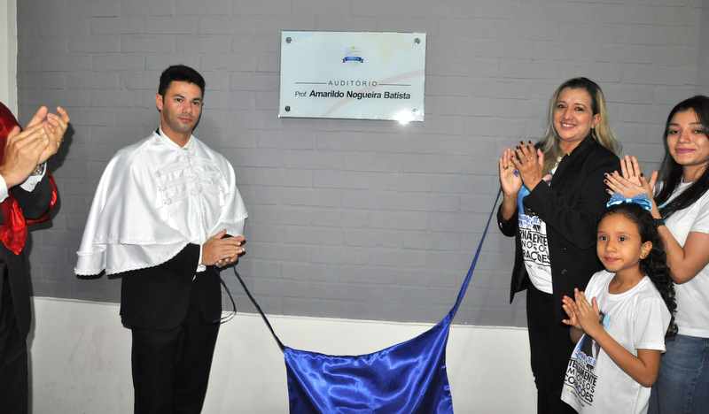 O auditório da UERR passou a se chamar Auditório professor Amarildo Nogueira Batista. Ele era professor do curso de História e morreu no ano passado. Foi descerrada uma placa em sua homenagem.