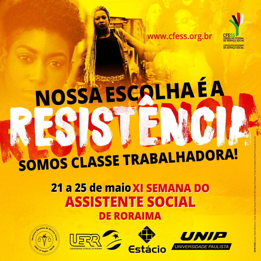 O Conselho Regional de Serviço Social (CRESS 15ª Região – AM/RR) realizará de 21 a 25 de maio a 11a Semana do Assistente Social de Roraima. O evento tem a parceria da Universidade Estadual de Roraima, do Centro Universitário Estácio da Amazônia e da Unip Boa Vista. Os interessados devem procurar o CRSS para fazer