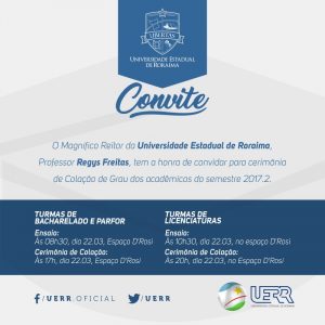 As turmas de Bacharelado e do Parfor terão ensaio às 8h30 e colação de grau às 17 horas, no Espaço D’Rosi, do dia 22 de março, quinta-feira.