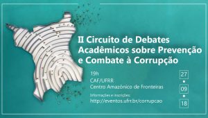O II Circuito de Debates Acadêmicos sobre a Prevenção e o Combate à Corrupção será realizado no dia 27 de setembro, a partir das 19h, no Centro Amazônico de Fronteiras (CAF). As Inscrições são gratuitas podem ser feitas na página do evento. A ação é organizada pelo Ministério da Transparência, Fiscalização e Controladoria Geral da