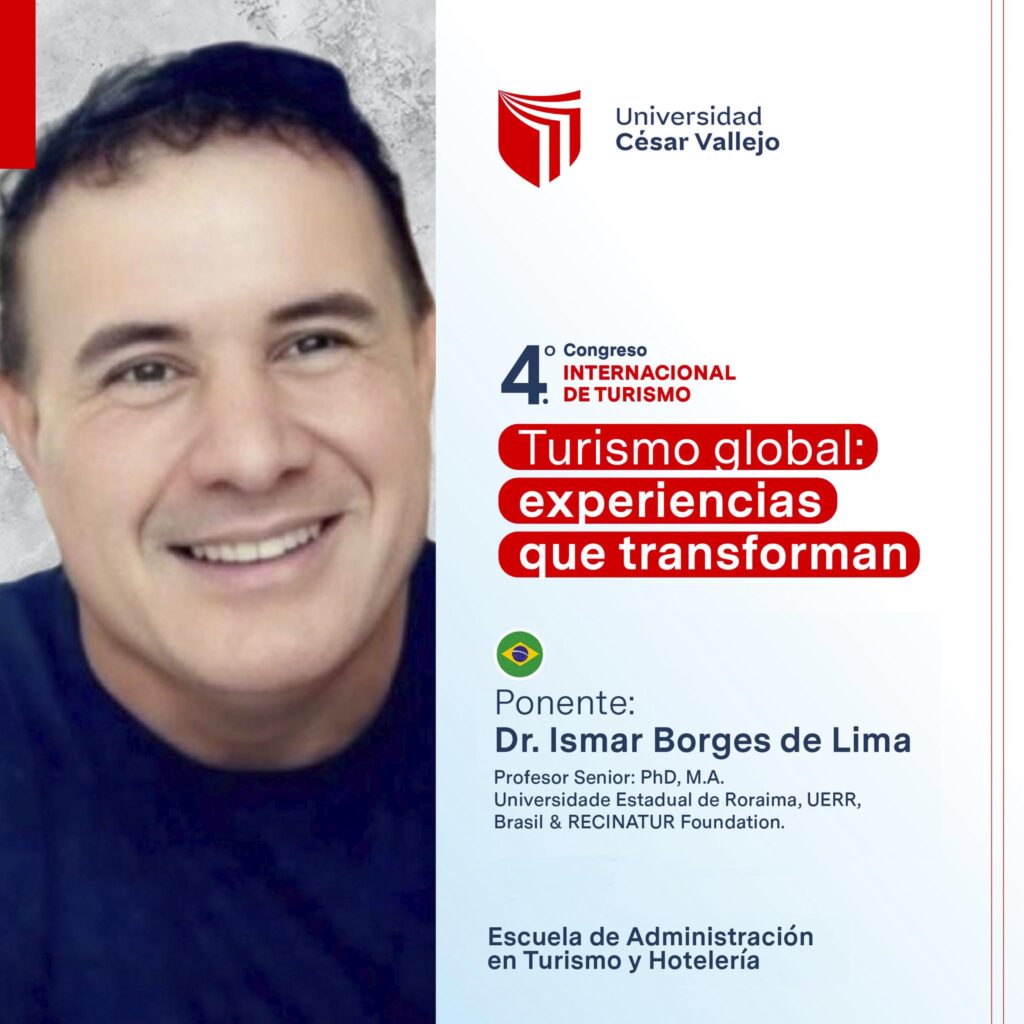 A Universidade Estadual de Roraima (UERR) deu mais um passo significativo em seu processo de internacionalização com a participação do professor Dr. Ismar Borges de Lima como palestrante convidado no 4º Congreso Internacional de Turismo, promovido pela Universidad César Vallejo (UCV), no Peru. O evento, realizado nos dias 26 e 27 de novembro, de forma virtual, reuniu especialistas de diversos países da América Latina e América do Norte.