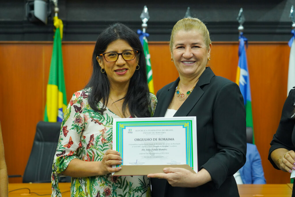Nesta quinta-feira, 22 de agosto, durante sessão especial na Assembleia Legislativa de Roraima (ALE-RR), uma professora e uma acadêmica do curso de Letras da Universidade Estadual de Roraima (UERR) receberam a Comenda Orgulho de Roraima.