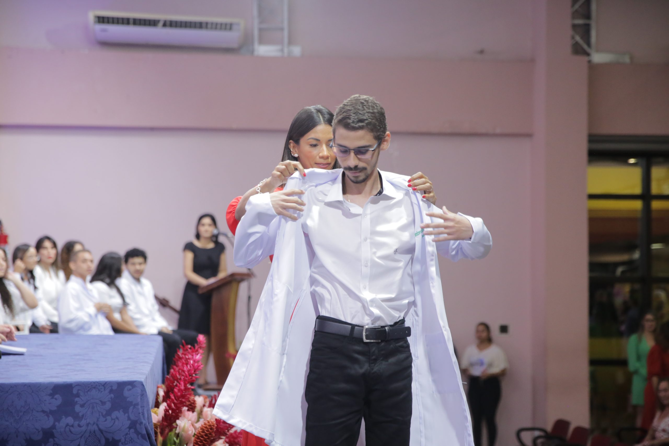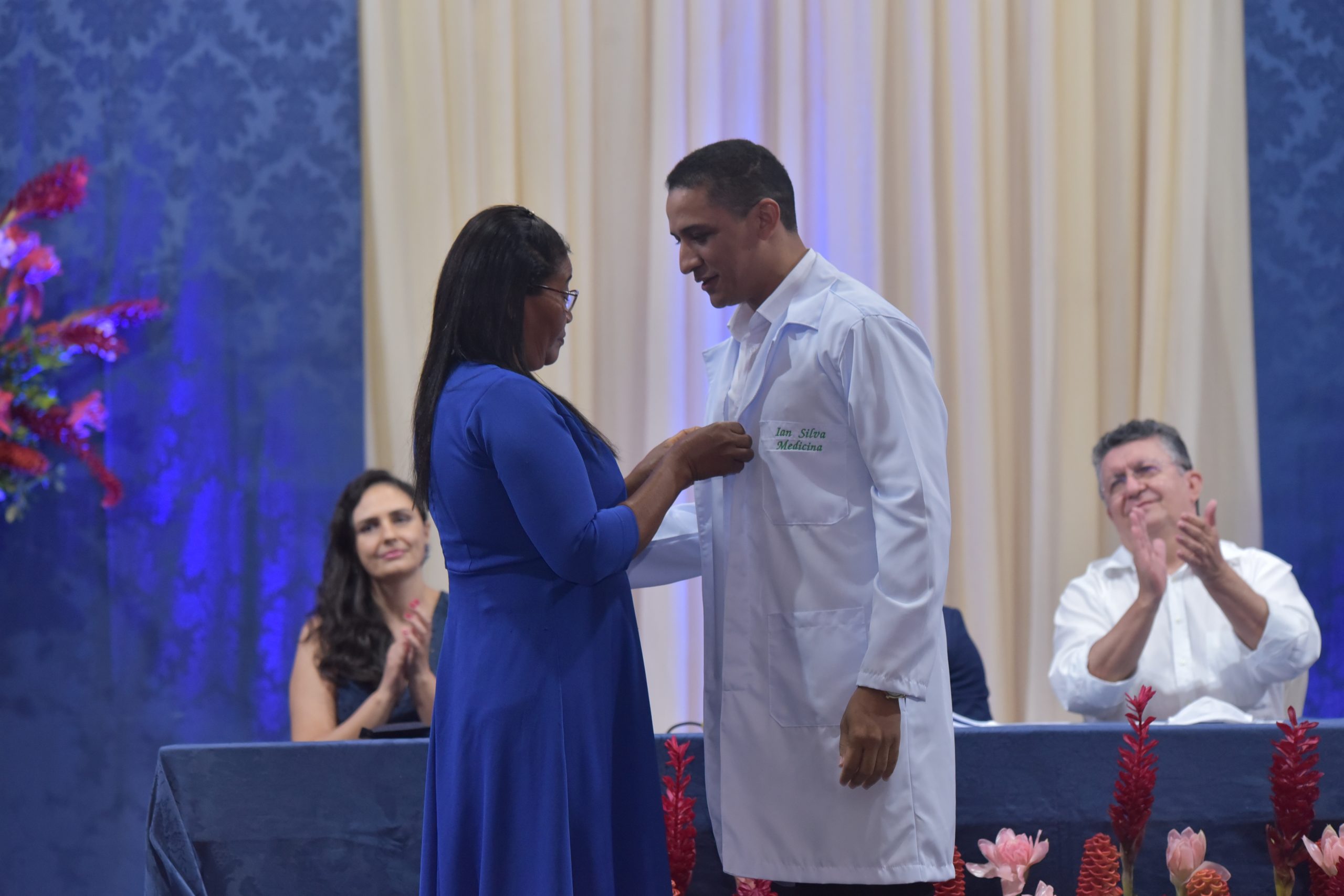 A solenidade é tradicional e ocorre no primeiro semestre dos cursos da Saúde. Dessa vez, participaram 23 alunos de Enfermagem e 25 de Medicina. Durante o evento os acadêmicos receberam de seus padrinhos e madrinhas a vestimenta característica dos profissionais da Saúde.
