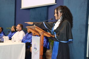Steffanni Félix, do curso de Letras, foi uma das oradoras. Em seu discurso, destacou a garra dos colegas para vencer os desafios – entre eles, a pandemia – e comemorou o início de um novo ciclo. “Tenho confiança de que todos nós faremos a diferença. Não importa qual caminho cada um escolherá seguir, lembrem-se de que somos capazes de alcançar grandes feitos, porque somos a prova viva da determinação e do trabalho árduo”.