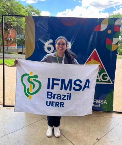 Na Universidade Estadual de Roraima, UERR, a IFMSA Brazil é um projeto de extensão regularmente cadastrado e que atua no tripé ensino, pesquisa e extensão. O comitê local foi filiado oficialmente em 2020 pela primeira turma de Medicina da instituição. Neste semestre, entre os dias 23 e 26 de outubro, o grupo enviou à 63ª Assembleia Geral, realizada em Uberlândia (MG), a representante da 6ª turma, Jessica Ortiz, atual Presidente Local (LP).