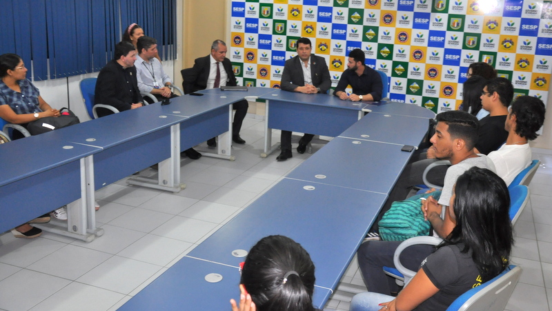 A solenidade de assinatura ocorreu no auditório da SSP na presença dos acadêmicos do curso de Segurança Pública e membros da direção da UERR.
