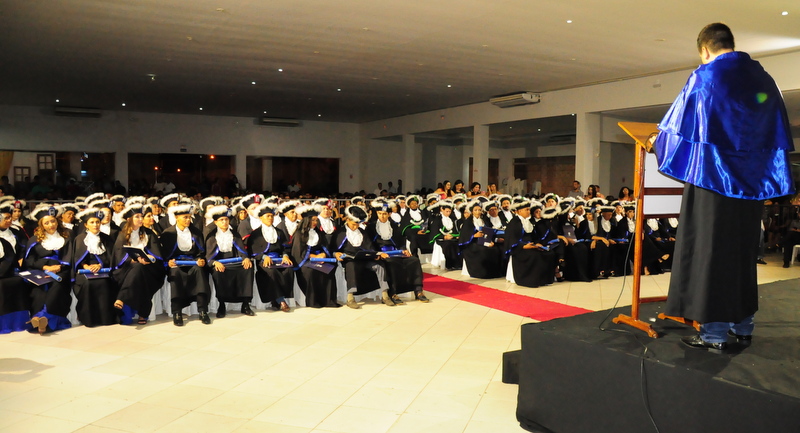 Na primeira solenidade, iniciada às 18 horas, voltada para os cursos de bacharelado, 61 alunos eram dos cursos de Ciências Contábeis, Serviço Social, Turismo, Administração, Ciência da Computação, Agronomia e Direito colaram grau. Eles são dos municípios de Boa Vista, Rorainópolis, São João da baliza, Caracaraí, Pacaraima e Normandia.