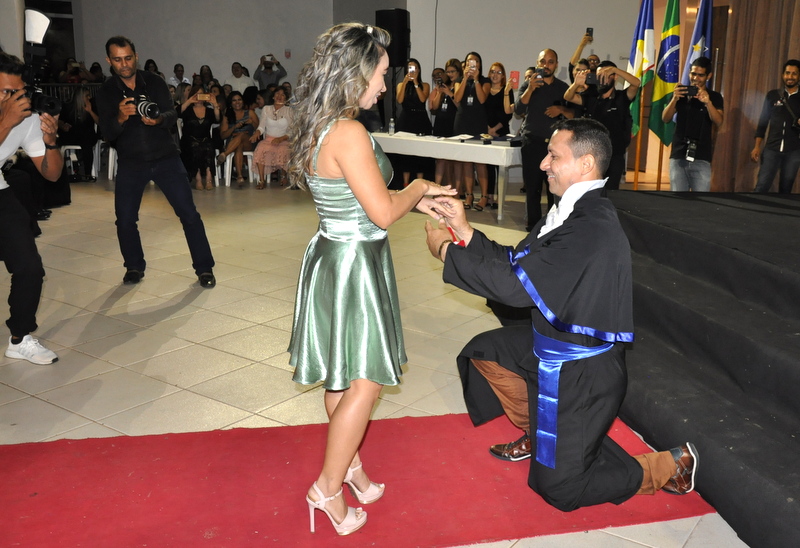 Na segunda cerimônia, o orador das turmas dos cursos de Licenciatura, Fredson Nascimento, do curso de Matemática de Boa Vista, surpreendeu a todos ao pedir a mão da sua noiva, Venerana Portela, em casamento. Houve troca de alianças.